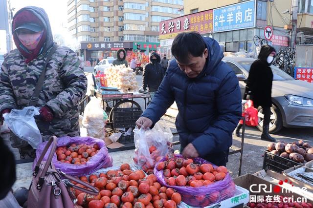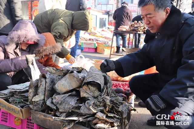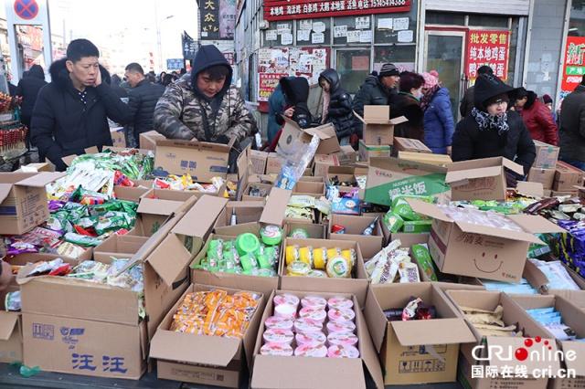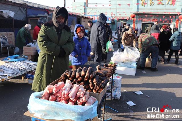 國際在線消息(記者 于淼):2月3日,臘月二十九,黑龍江省齊齊哈爾市克山縣的綜合貿易大市場是當地采購特色年貨的好去處。零下13度的露天市場里隨處可見捂得嚴嚴實實的買家和賣家。來這兒采購年貨的市民,都是奔著“凍貨”來的。