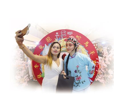 在菲律賓馬尼拉舉辦的“新春歡慶周”活動上,熱心的現場觀眾和紅溪禮示大學孔子學院的京劇表演志愿者自拍留念。