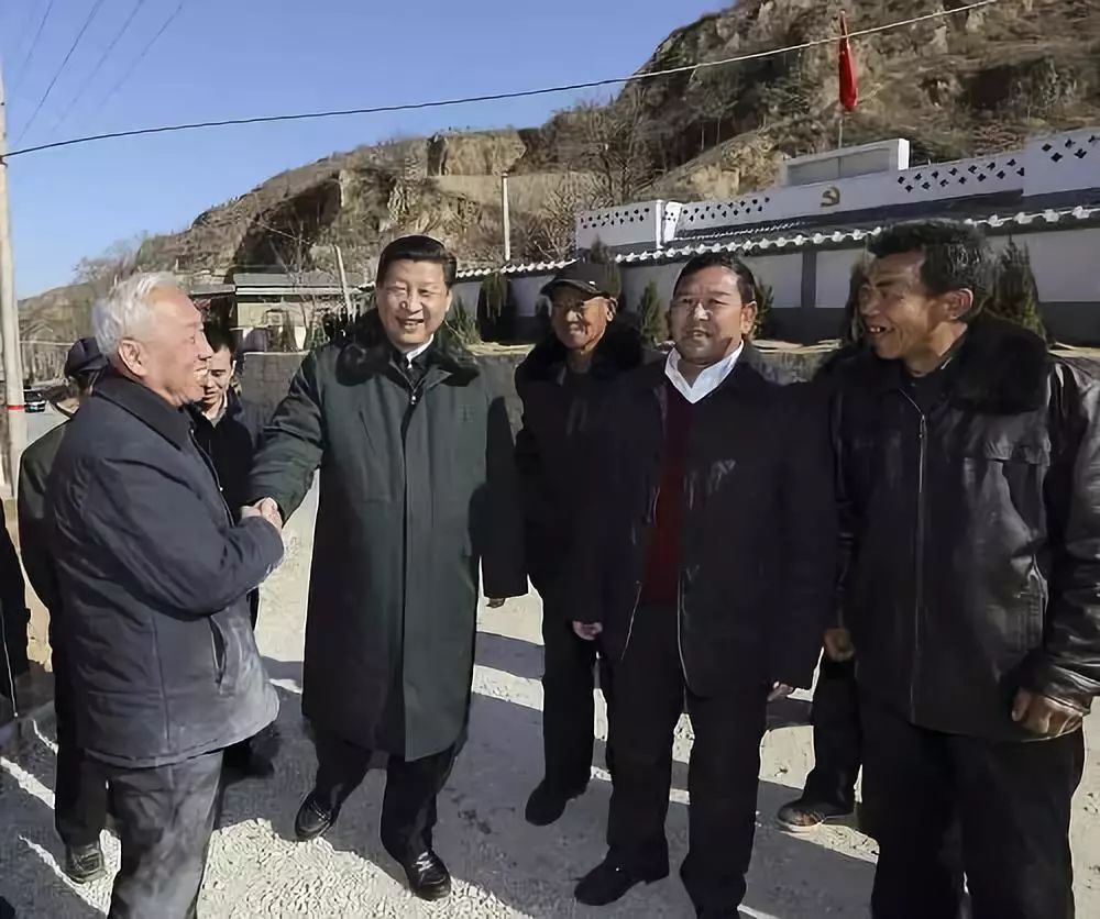△2015年2月13日上午,習近平在延安市延川縣文安驛鎮梁家河村看望村民。
