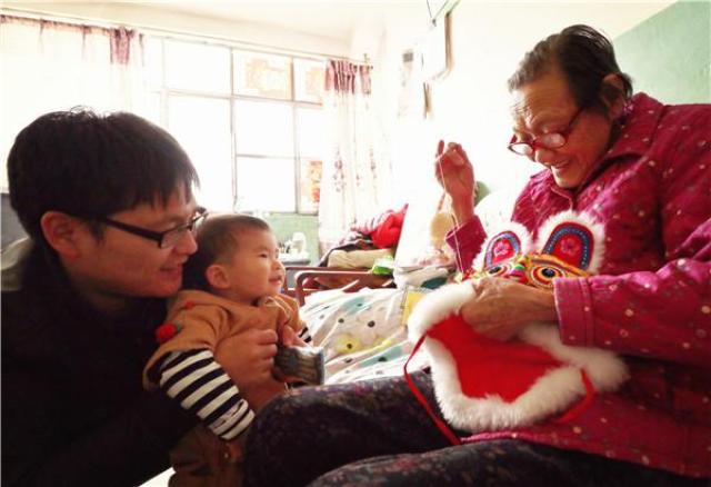 一針一線縫虎帽 祖孫濃情傳久遠(胡東湦 攝)