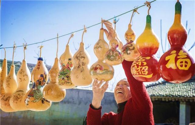 新春來臨忙繪曬 工藝葫蘆富鄉村(李克榮 攝)