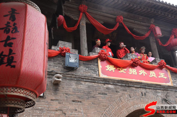 王家茶館戲臺上,一聲聲晉味名家唱腔引來陣陣喝彩;真武閣城樓上,王員外攜女兒正在拋繡球招女婿,俊俏的后生搶得大紅繡球,要和王家小姐成親,逗得客人呵呵大笑;工農兵禮堂,川劇變臉、魔術、紅燈籠舞等讓游客目不轉睛;面人糖畫、酸棗面、烤紅薯、棉花糖、琉璃咯嘣、葫蘆燙畫,吆喝聲、叫賣聲喊出濃濃的年味兒,讓人在小時候的過年記憶中流連忘返。