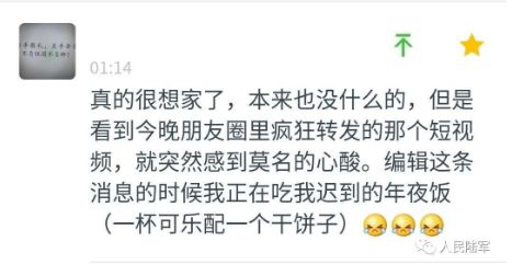 真的很想家了,本來也沒什么的,但是看到今晚朋友圈里瘋狂轉發的那個(過年)短視頻,就突然感到莫名的心酸。編輯這條消息的時候我正在吃我遲到的年夜飯(一杯可樂配一個干餅子)