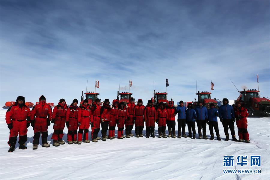 2月4日農歷大年三十,部分內陸隊員在南極冰蓋上合影。新華社記者 劉詩平 攝