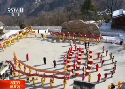 大年初一,在陜西渭南少華山,一場新春廟會非遺文化展演熱鬧上演。在鏗鏘的鑼鼓聲中,龍隨樂舞,八條長龍在600多米的龍型棧道上跳躍、撲騰、登高、翻轉,時而騰云駕霧,時而翻江倒海。