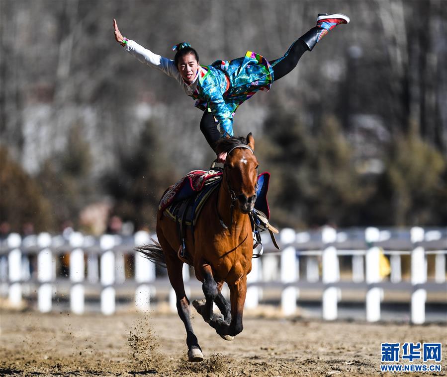 2月7日,騎手在進行馬術表演。新華社記者 普布扎西攝