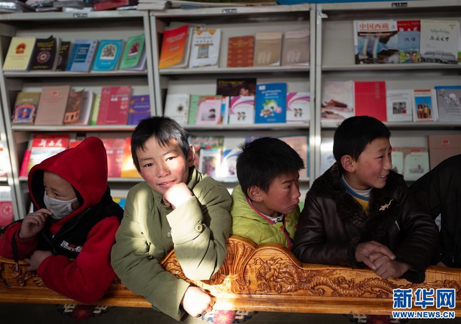 雙湖縣嘎措鄉的牧民孩子在閱覽室里(1月31日攝)。 新華社記者 普布扎西 攝