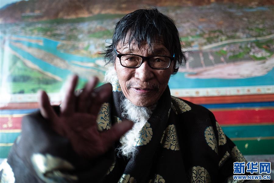 現年77歲的白瑪老人講述當年的情況,43年前,為尋找更好的草場、更好的生活,白瑪老人從那曲地區申扎縣,“無畏”地走進了雙湖。自1974年,從申扎縣嘎措鄉到雙湖嘎措鄉,老人擔任鄉黨委書記一直到2002年(1月31日攝)。 新華社記者 普布扎西 攝
