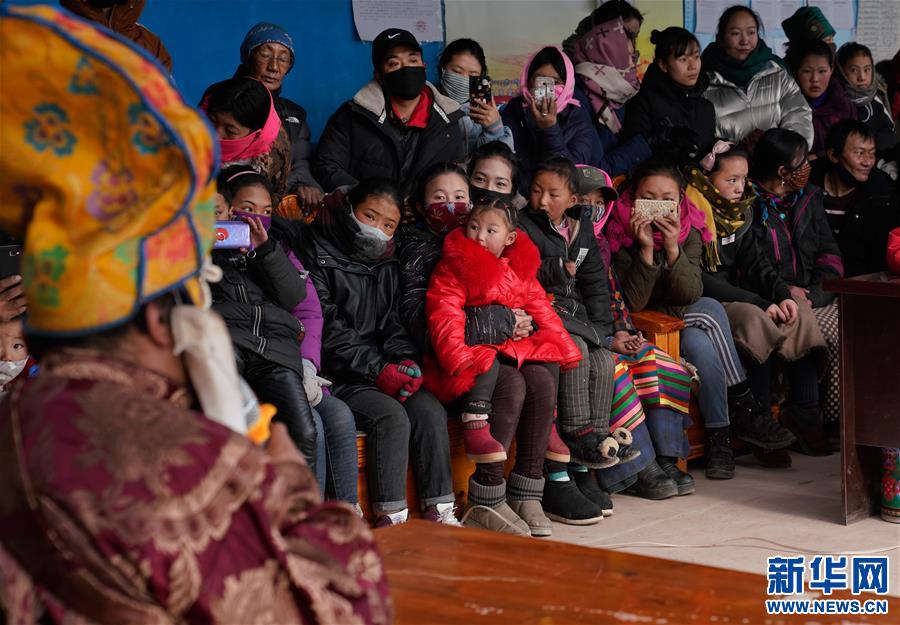 雙湖縣嘎措鄉的牧民在觀看節日期間文藝下鄉活動的表演(1月31日攝)。 新華社記者 普布扎西 攝