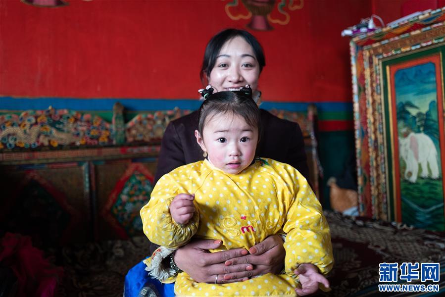 雙湖縣嘎措鄉瓦日香瓊村牧民在家照看孩子(1月31日攝)。 新華社記者 普布扎西 攝