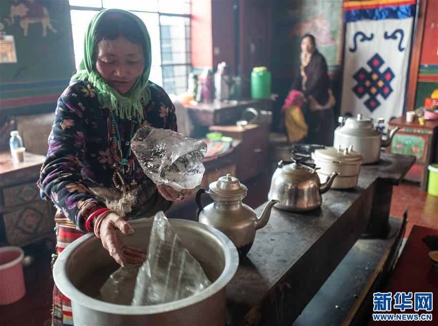 雙湖縣嘎措鄉牧民在化冰燒水(1月31日攝)。 新華社記者 普布扎西 攝