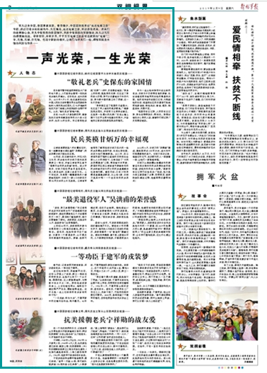 軍人以身許國,舉國尊崇其家。春節(jié)前夕,中國國防報開設(shè)“走進(jìn)光榮之家”專欄,派出記者分赴長城內(nèi)外、大江南北,走進(jìn)光榮之家,采訪退役老兵。老兵們的故事和心曲,平凡中有濃濃的家國情懷,平淡中有深深的軍旅情結(jié),給人以無盡的感慨和啟迪。尋常巷陌,平常歲月,千千萬萬光榮之家面對這滾燙的“光榮”二字,無愧,無憾,亦無悔。在這個嶄新的春天,讓我們與老兵們一起,感悟軍民魚水情的積淀與傳承——