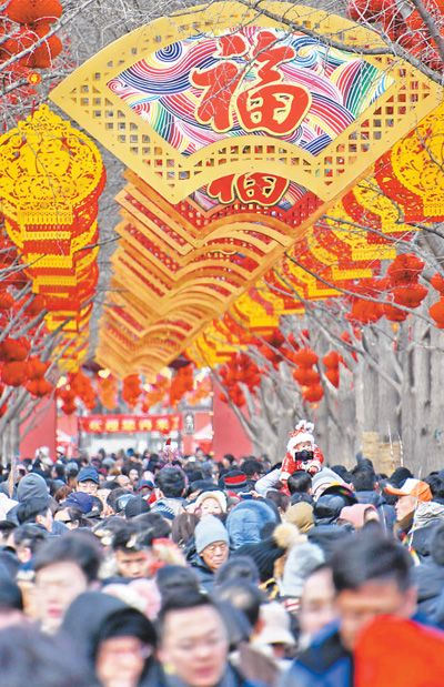 2月9日,人們參加地壇春節文化廟會。春節期間,大批市民和游客來到北京市東城區地壇公園參加地壇春節文化廟會,感受傳統文化,體驗濃濃年味。