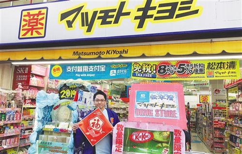 日本東京松本清連鎖店已接入支付寶,店內還擺上了中國“福”。 王 穎攝(中經視覺)