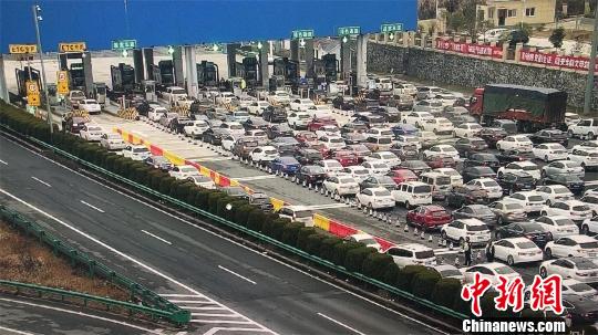 2月11日上午8時48分,滬鄂高速公路鄂皖省際收費站因車流量大出現排隊等候現象 李洋 攝