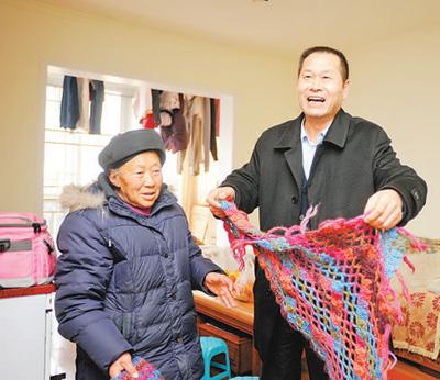 王貴武為邱媽媽送上圍巾。(資料圖片)