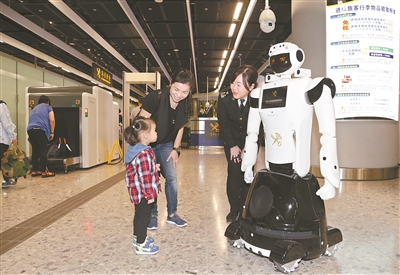 宋蕓(右)在給旅客小朋友介紹海關(guān)機器人。