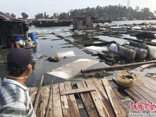 2018年11月8日,泉州市泉港區(qū)肖厝村,一名養(yǎng)殖戶在清理現場。
