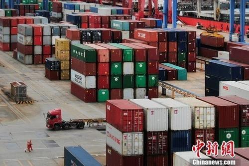 資料圖:航拍江蘇連云港一處集裝箱貨運(yùn)碼頭。中新社記者 泱波 攝