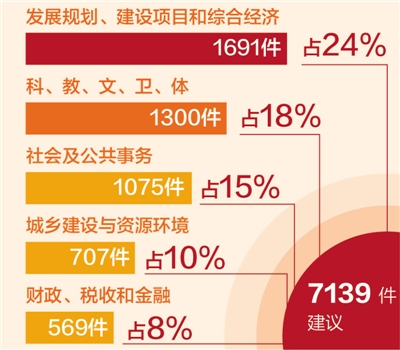 歷年來,民生方面的代表建議數量最多、占比最高。2018年,科教文衛體類和社會公共事務類的建議共2375件,占建議總數的1/3。