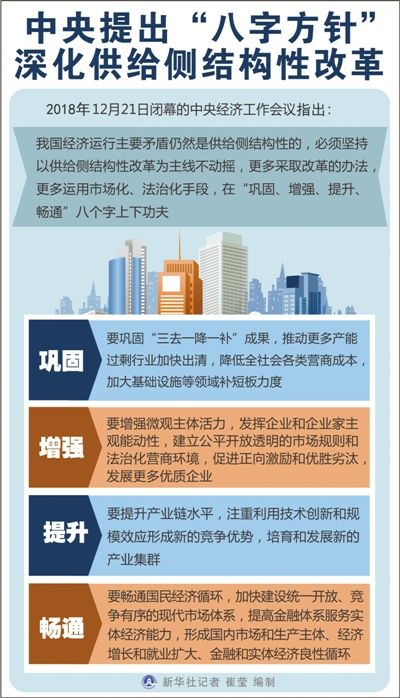 去年底召開的中央經濟工作會議確定了2019年經濟工作的指導思想、目標任務和方針政策,明確提出:“我國經濟運行主要矛盾仍然是供給側結構性的,必須堅持以供給側結構性改革為主線不動搖,更多采取改革的辦法,更多運用市場化、法治法手段,在‘鞏固、增強、提升、暢通’八個字上下功夫。”這對于深化供給側結構性改革、推動經濟高質量發展具有重要指導意義,我們要深入領會、認真貫徹執行。