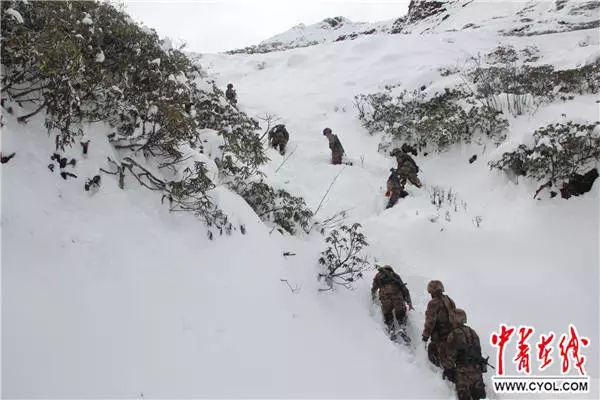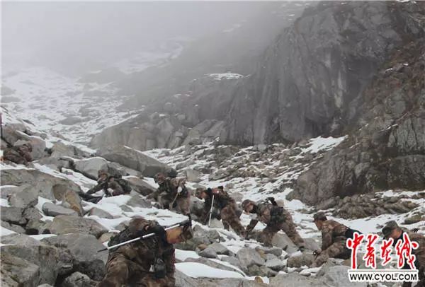 官兵躬身行進(jìn)在高海拔的山口。