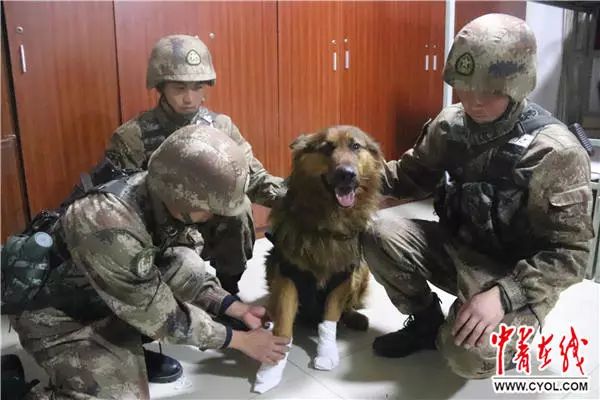沒等連長說話,中士賀鋼摸著“拉菲”的頭緩緩開口說:“2014年春節(jié)巡邏,路上遭遇暴風(fēng)雪,道路被積雪掩蓋,電臺失聯(lián),如果不能盡快回到單位,整個巡邏隊伍都要滯留在海拔4500米的雪山上,那是非常危險的。就在大家面面相覷的時候,軍犬扎西突然跑了出去,每前進(jìn)一段就回頭朝大家叫上幾聲,參加巡邏的帶隊干部吳寧建議大家跟著軍犬走。官兵們半信半疑地跟在扎西后面,深一腳淺一腳地往回趕,最終脫離了困境。扎西卻因為在雪堆亂石中找路,爪子被磨破,身上被亂石劃出多道傷口,歸建后沒多久就去世了。從此,連隊每次巡邏都帶軍犬上山,并且為它們‘全副武裝’好。”