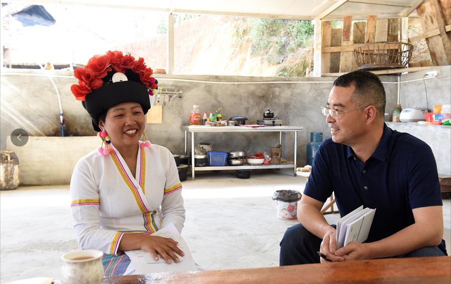 西雙版納傣族自治州稅務(wù)局黨委委員、副局長(zhǎng)周志輝走訪全國(guó)人大代表、勐海縣打洛小學(xué)教師玉龍