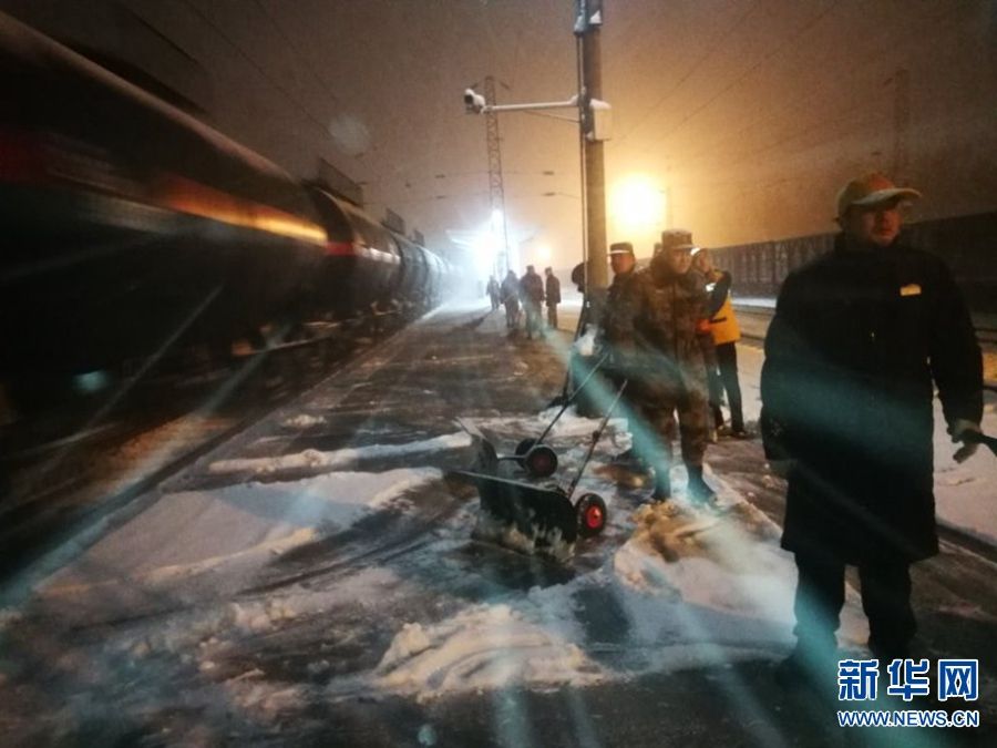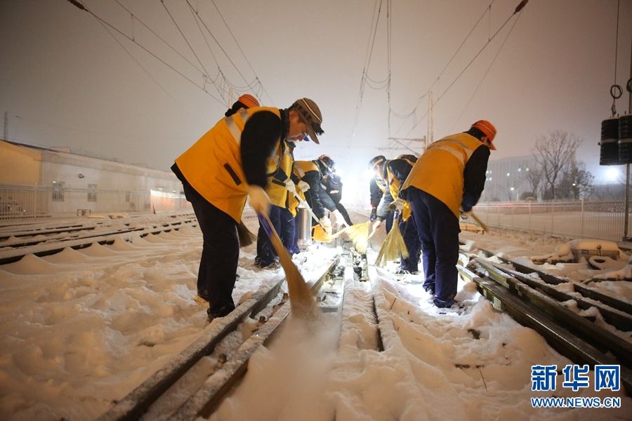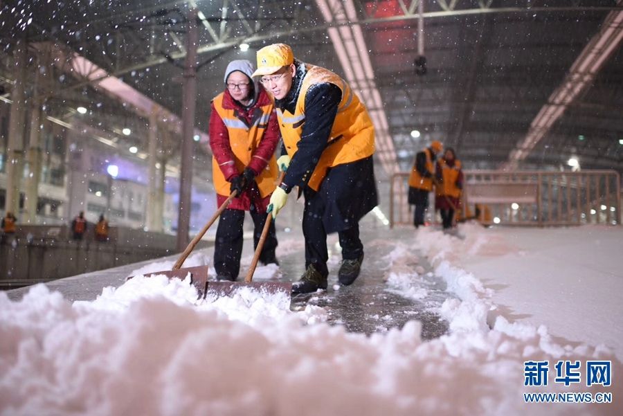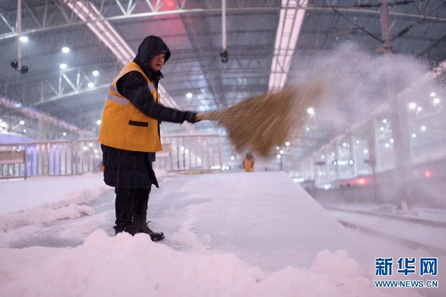 2月13日,河南普降大雪,中國鐵路鄭州局集團有限公司職工以雪為令,迅速行動,連夜組織在崗和休班職工進行清掃車站站臺、股道道岔積雪,確保春運期間交通大動脈安全暢通,讓旅客走得了、走得好。