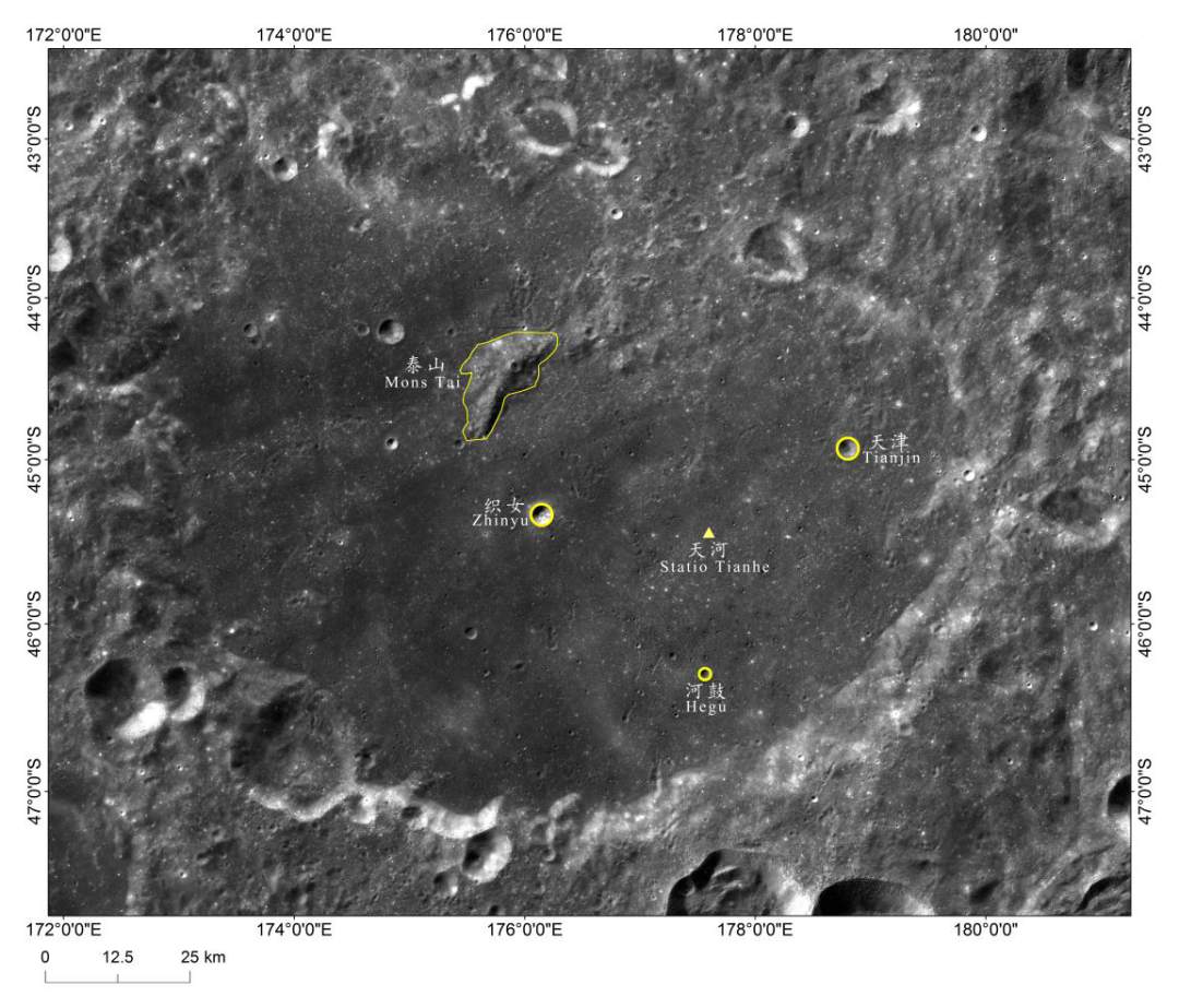 記者從國家航天局獲悉,2019年2月15日,中國國家航天局、中國科學院和國際天文學聯合會聯合召開新聞發布會,向全世界發布嫦娥四號著陸區域月球地理實體命名。2019年2月4日,國際天文學聯合會(IAU)批準了利用探月工程嫦娥二號和嫦娥四號高分辨月面影像數據申報的嫦娥四號著陸點及其附近5個月球地理實體命名:嫦娥四號著陸點命名為天河基地;著陸點周圍呈三角形排列的三個環形坑,分別命名為織女、河鼓和天津;著陸點所在馮·卡門坑內的中央峰命名為泰山。這是我國月球探測工程科學數據成果在月球地理實體命名上的又一次重要應用。