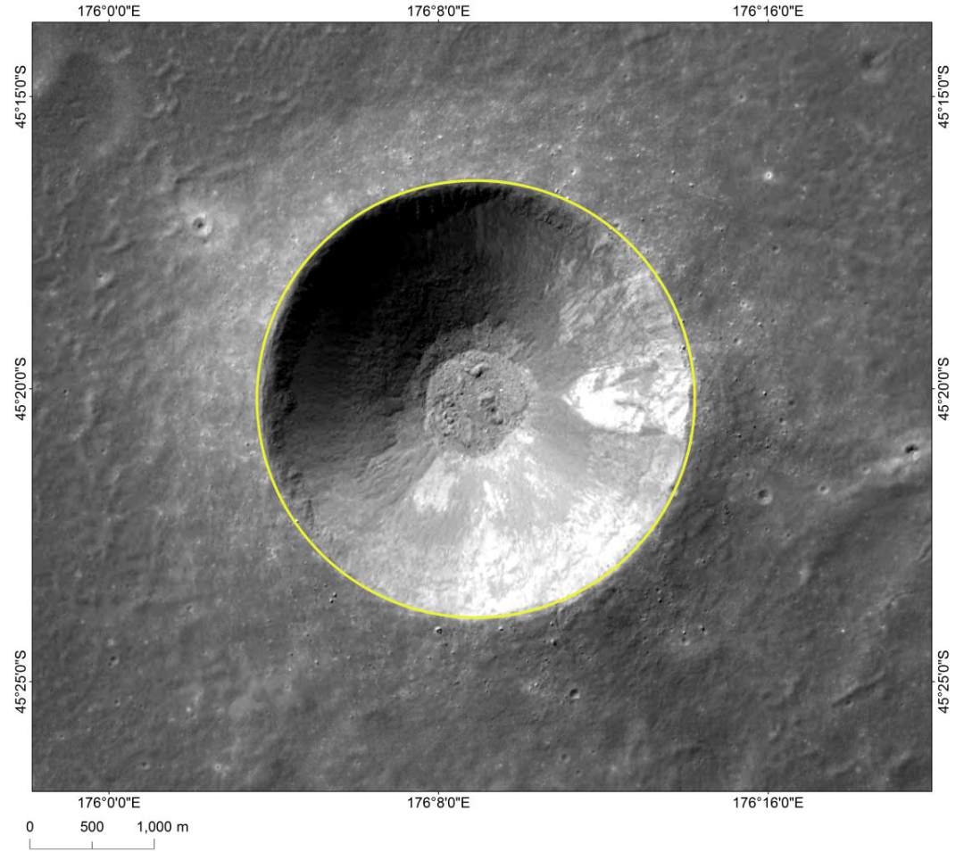 泰山以我國五岳之首山東省境內的泰山而命名,位于嫦娥四號著陸點西北方向約46公里處,其“海拔”高度為-4305米,相對馮·卡門坑面高度約為1565米。泰山是我國首次獲得的“山”類月球地理實體名稱的自主命名,這也是自1985年后33年的時間里IAU再一次批準命名“山”這一類月球地理實體名稱。