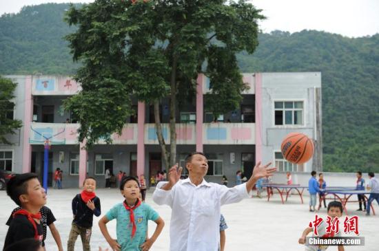 資料圖:貴州黃平鄉村教師與學生一起上體育課。中新社記者 賀俊怡 攝