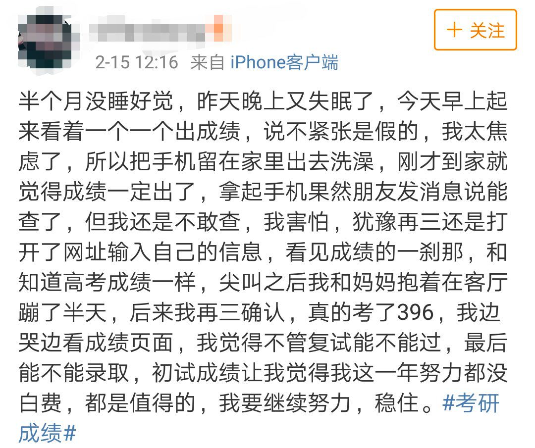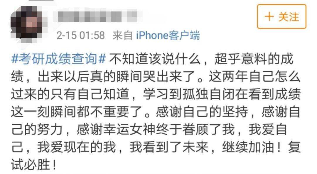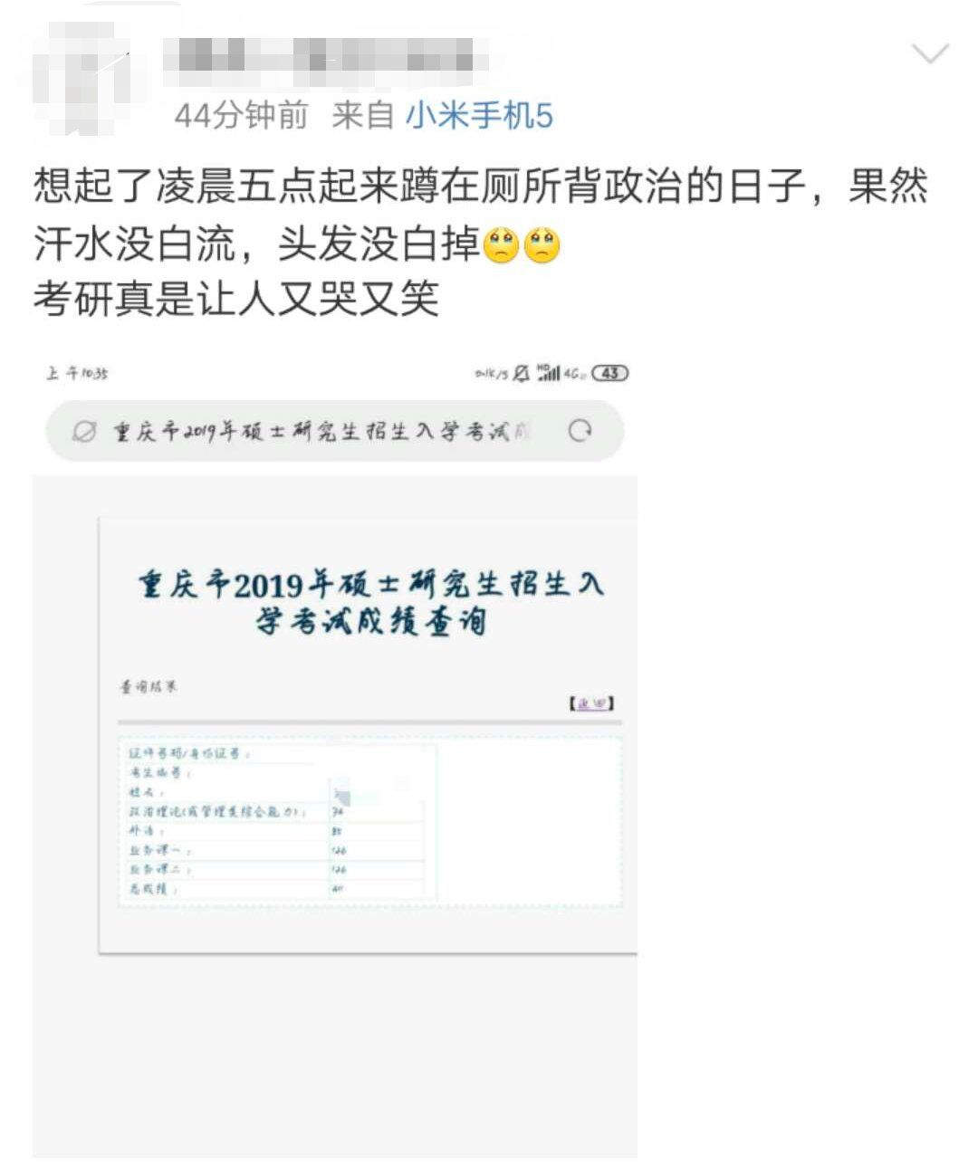 與此同時,不少考生看到成績后,都想起那段備考奮戰的日子,“考研真讓人又哭又笑”↓↓↓