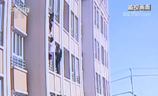 執勤民警 王建峰:“小孩當時手是攀爬到4樓窗沿邊,腳踏了可能一點點邊子,小孩一直在抖一直在哭喊爸爸。 ”
