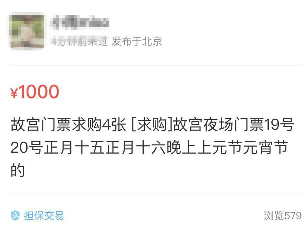 94年來(lái)首開的故宮夜場(chǎng),也讓不少搶不到門票的群眾在網(wǎng)絡(luò)求購(gòu)。而求購(gòu)的價(jià)格,大概就和演唱會(huì)門票差不多吧。