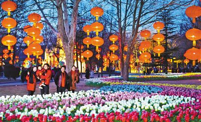 近日,北京市豐臺區(qū)舉辦以“福滿京城 春賀神州”為主題的燈會及燈光秀活動,營造紅火熱鬧的中國年味兒,豐富群眾節(jié)日文化生活。該區(qū)還向道德模范等先進(jìn)人物代表免費發(fā)放燈會門票。燈會將一直持續(xù)到元宵節(jié)。圖為2月17日游客在欣賞郁金香燈海。