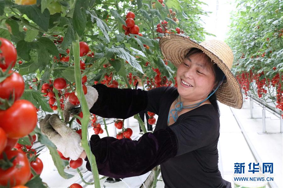 江西省贛州市贛縣區(qū)江口鎮(zhèn)農(nóng)民在蔬菜基地里采摘西紅柿(2018年5月5日攝)。新華社發(fā)(盧小雪 攝)