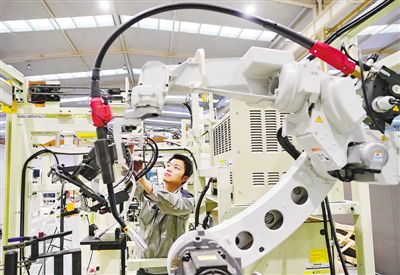 河北唐山高新技術(shù)產(chǎn)業(yè)開發(fā)區(qū)機(jī)器人孵化中心,一家科技公司的科研人員在組裝智能焊接機(jī)器人。