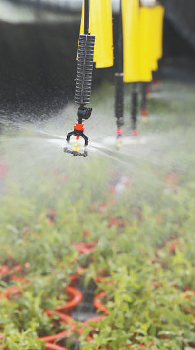 江蘇海安一家科技智慧農(nóng)業(yè)示范園,電力智能滴灌設(shè)施在灌溉作物。