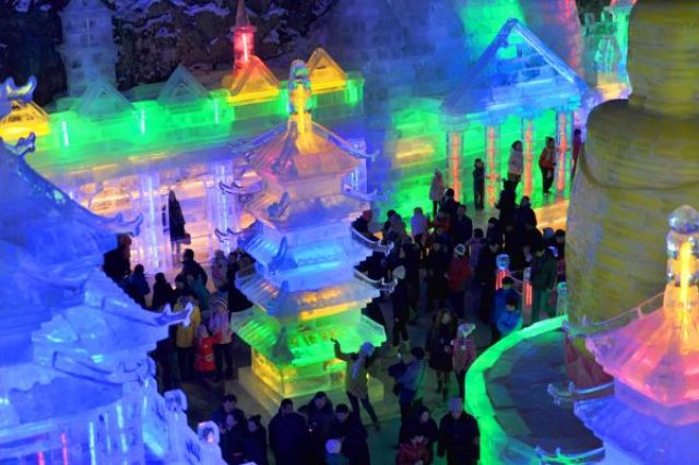 ↑北京龍慶峽冰燈藝術(shù)節(jié)(新華社)