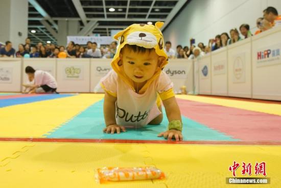資料圖:百名嬰兒參加全港嬰兒慈善馬拉松爬行大賽。 中新社記者 張煒 攝