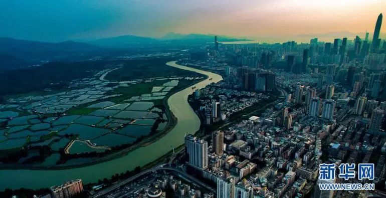 無人機拍攝的深圳和香港落馬洲河套地區及周邊風光(2018年5月23日攝)。新華社記者 毛思倩 攝