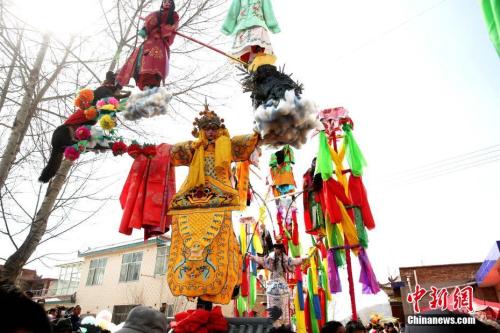 資料圖:2018年2月,西北民間“空中雜技”鬧新春。中新社記者 張添福 攝