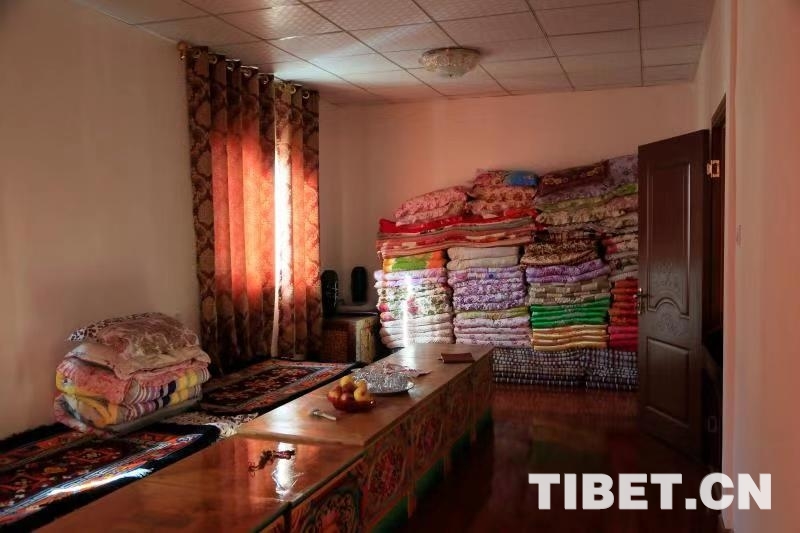 “以前想的是從山上搬到公路旁邊就已經很安逸了,沒有想到我們的房子外貌和藏房一模一樣是兩層,房間里面好安逸哦……”東蓮一邊擦拭著鋼爐一邊說:“這么大的房子我們才出了6000多塊錢,一家人搬進了寬寬敞敞的房子,還是樓上樓下,現在自己要勤快一點,屋頭收拾得好一點,干干凈凈的迎接更好的日子。”