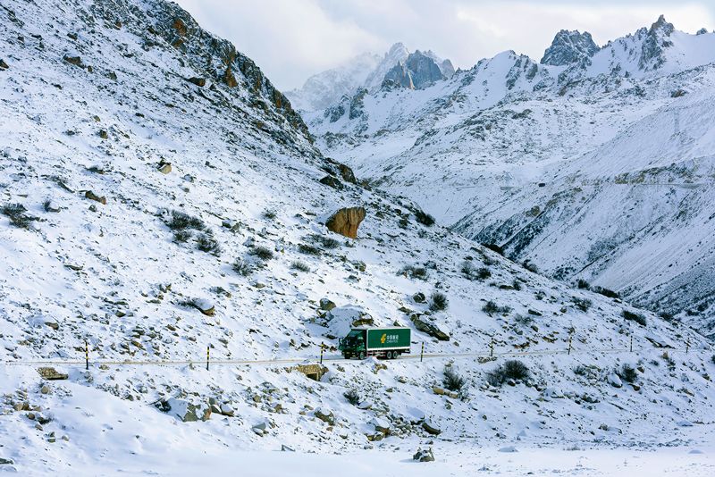 雪線郵路上那抹流動的郵政綠,在人們的心目中,就是黑夜里的光,就是困頓中的希望。 周兵/攝