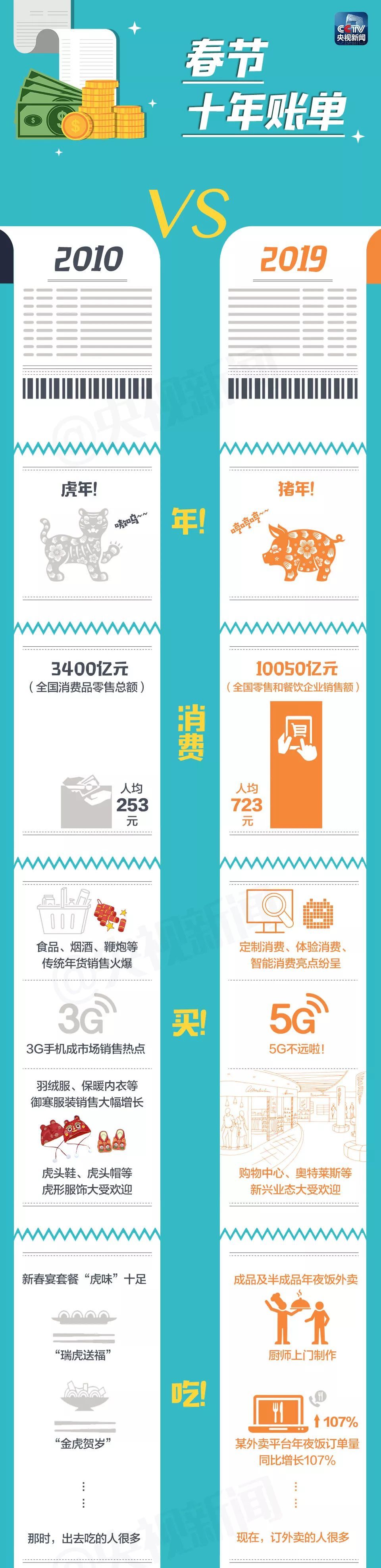購物車、行程單、結賬單、票根……對比2010年和2019年,整整十年,從除夕到正月初六,春節黃金周,人們的生活發生了怎樣的變化?這份賬單請查收??