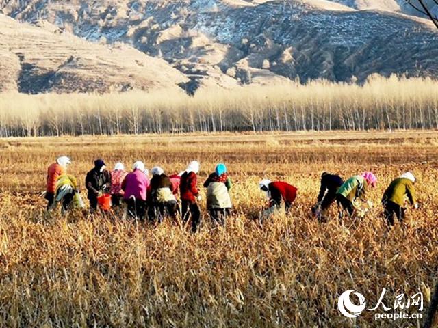 小廟子村的村民們正在采收中草藥射干的種子。(段國棟 攝)