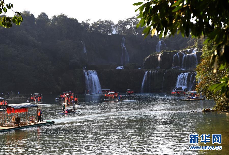 位于中越國際旅游合作區(qū)的大新縣德天瀑布,游客如織(2月8日攝)。新華社記者 周華 攝