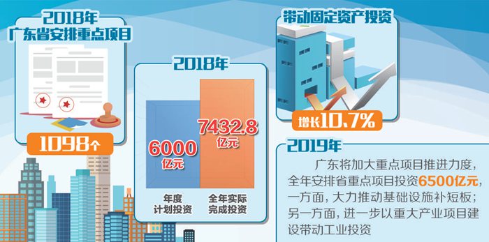 一批批重點(diǎn)項(xiàng)目的順利推進(jìn),為廣東省穩(wěn)定投資增長、實(shí)現(xiàn)高質(zhì)量發(fā)展奠定了堅(jiān)實(shí)基礎(chǔ)。去年以來,廣東各地以重大項(xiàng)目建設(shè)為抓手,穩(wěn)投資、增后勁,取得了顯著成效。統(tǒng)計(jì)顯示,2018年廣東省安排重點(diǎn)項(xiàng)目1098個(gè),年度計(jì)劃投資6000億元;全年實(shí)際完成投資7432.8億元,帶動(dòng)固定資產(chǎn)投資增長10.7%。