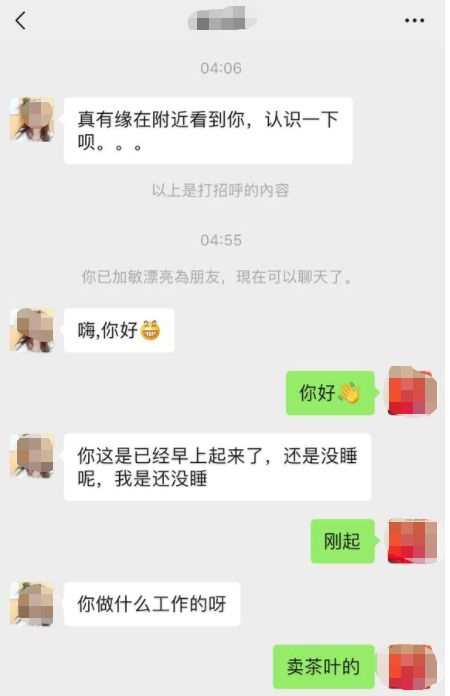 比較為人熟知的就是“爺爺家的茶葉滯銷了”的騙局,受害者“上鉤”后,騙子會在聊天中提到自己有個在家種茶的爺爺,自己辭了工作回家?guī)兔ΑT诘玫绞芎φ咄楹螅銜岢鲆浴氨阋恕钡膬r(jià)格請受害者嘗嘗自己制茶的手藝,將劣質(zhì)的茶葉以高出幾百倍的價(jià)格出售。